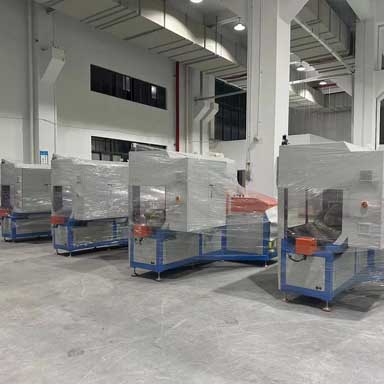 業(yè)務去浙江售后客戶現(xiàn)場-4臺小型全自動切鋁機并切